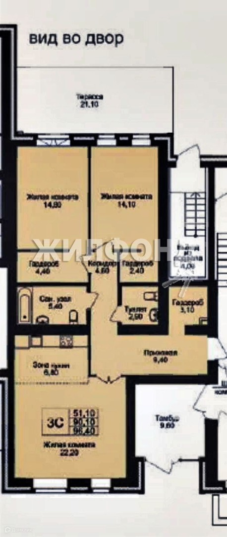 Общая площадь 90.1 м2
