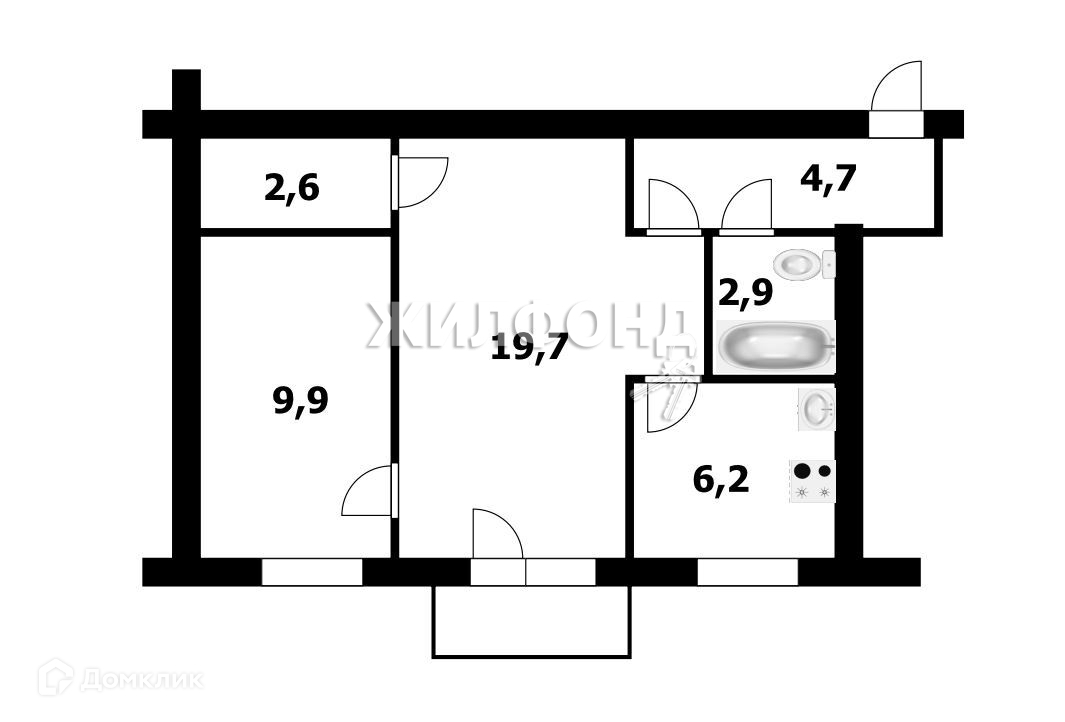 Жилая площадь 29.6 м2