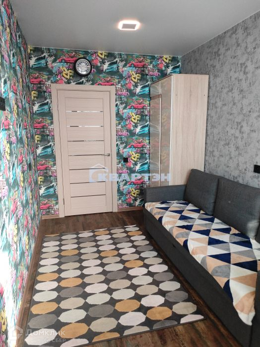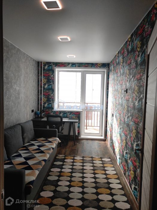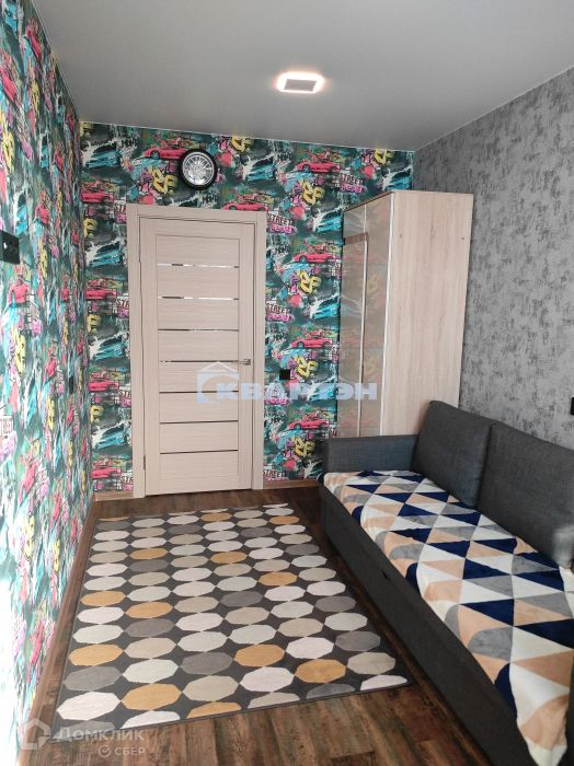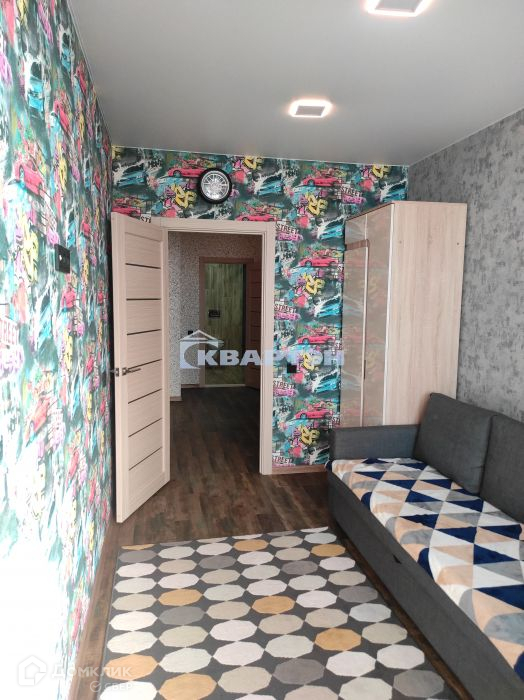 Обои на стены поклеили с учетом тематического назначения помещений: детская тематика - в детской комнате и геометрическая абстракция, в комнате. Все это дополняет качественная подобранная мебель.