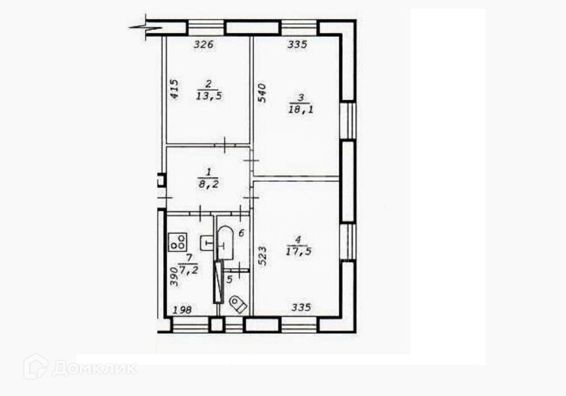 3-комнатная квартира, 69 м2, этаж 1 / 2, на продажу в Новосибирске, улица 9 Ноября, 218