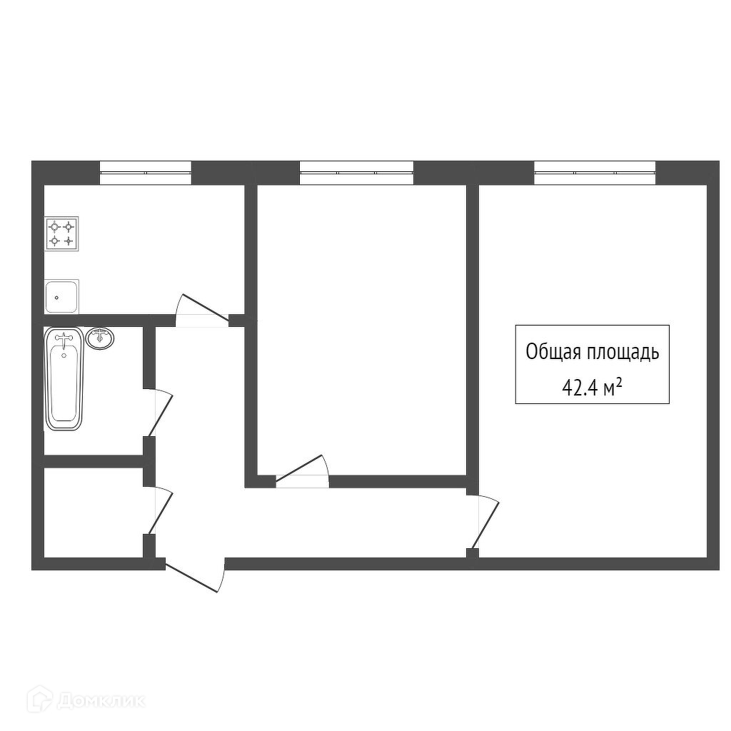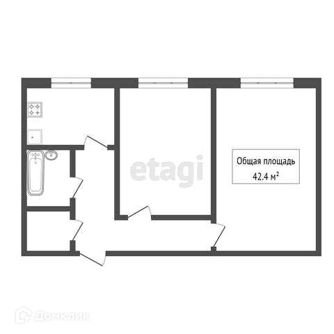 Общая площадь 42.4 м2