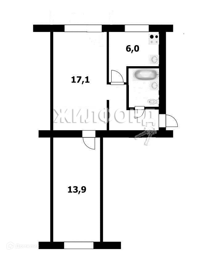 2-комнатная квартира, 43.4 м2, этаж 5 / 5, на продажу в Новосибирске, улица Мичурина, 37