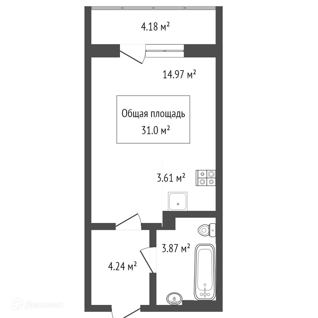 Общая площадь 31 м2