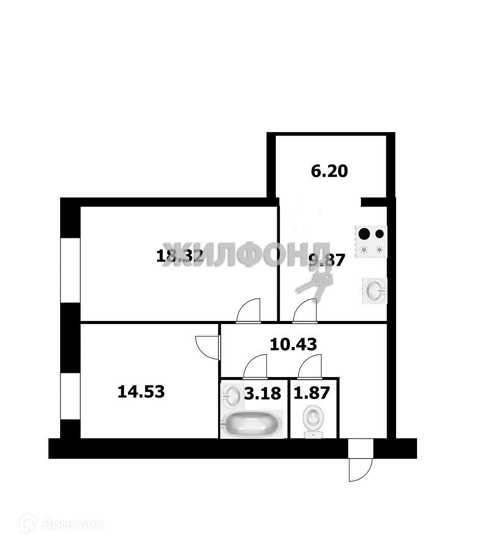 Общая площадь 58.3 м2