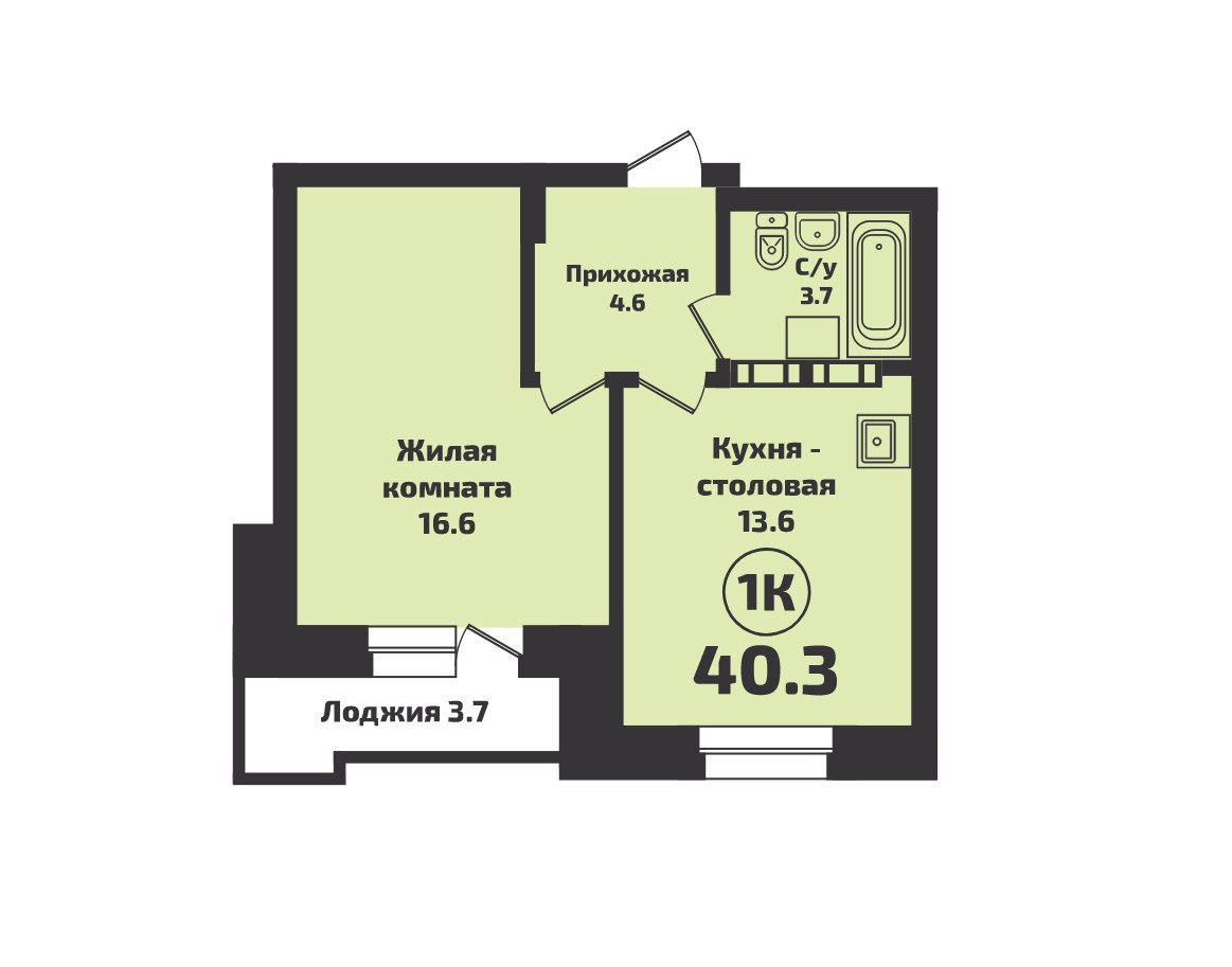 Общая площадь 40.3 м2