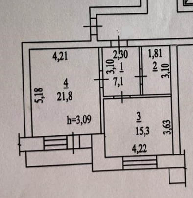 Жилая площадь 21.8 м2