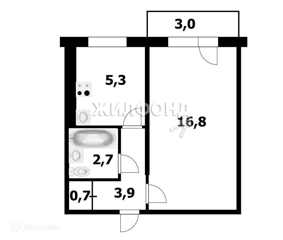 Общая площадь 29.4 м2