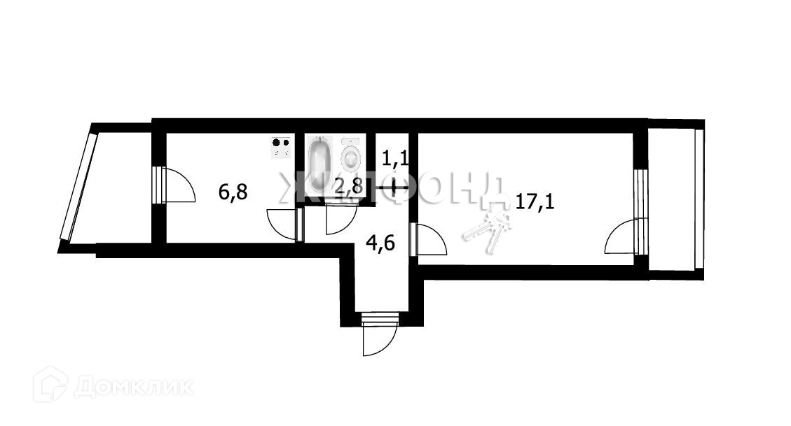 Жилая площадь 17.1 м2