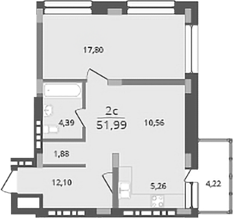 Общая площадь 56.2 м2