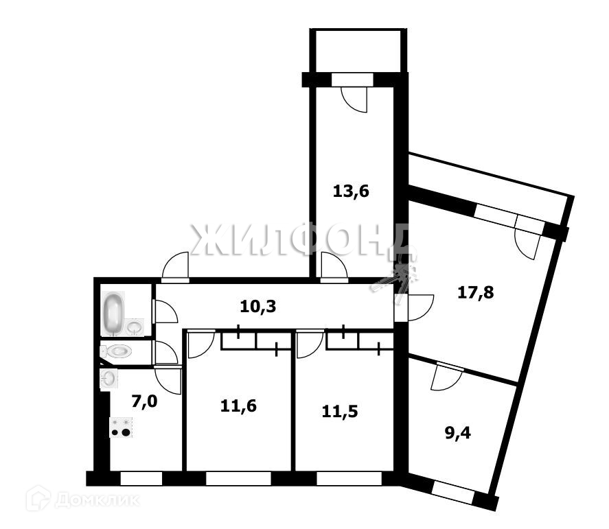 Жилая площадь 63.9 м2