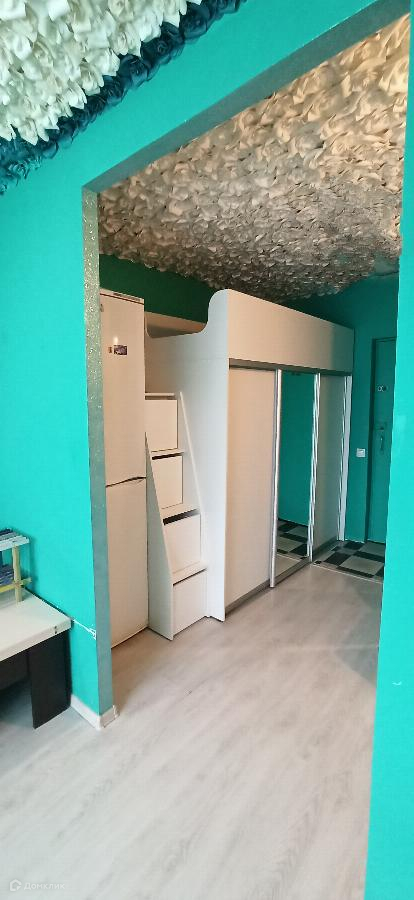В комнате 18м2 продумана все до мелочей. Шкаф сделан под заказ, катающиеся двери, сверху кровать 90*200, ступеньки-выдвижные ящики для хранения, высокий двухкамерный холодильник, в прекрасном состоянии. Кухонная зона также была продумана с учётом небольших размеров верхние шкафы сделаны в два ряда. В комнате три комода поставлены в ряд под ноль, кровать круглая, диаметр 200 см., стол трансформер. Кровать, стол, шкаф могут оставить по договоренности, вся осттальна мебель и техника остаётся в квартире покупателю.