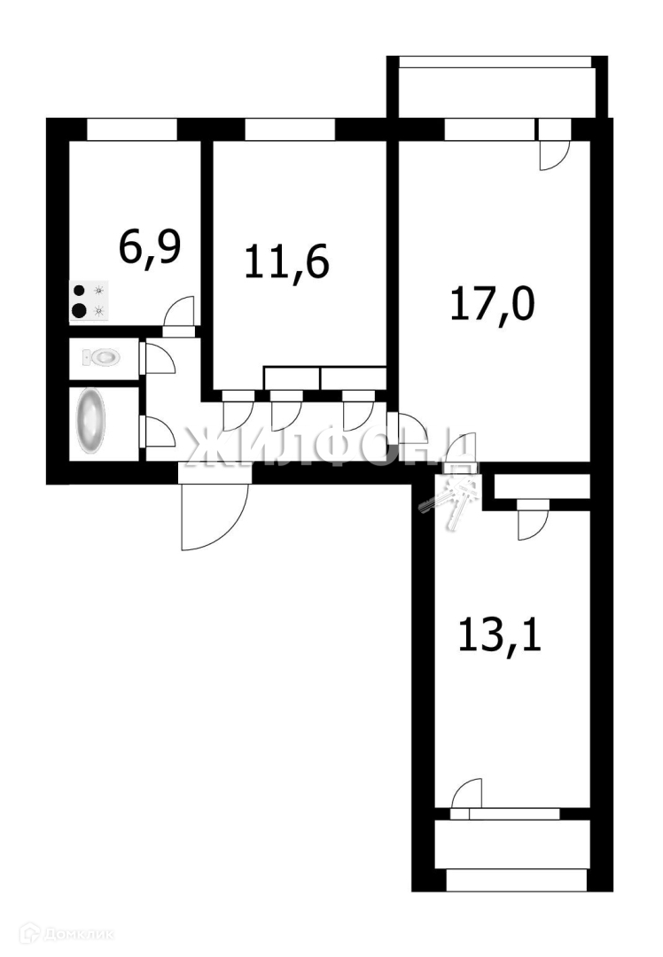 Жилая площадь 41.7 м2