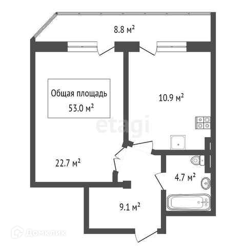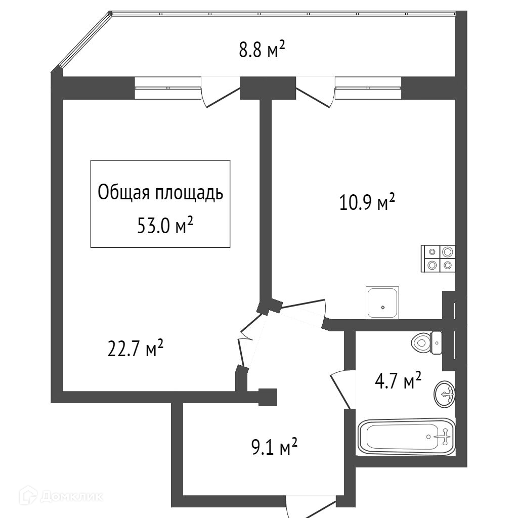 Общая площадь 53 м2