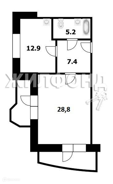 Жилая площадь 28.8 м2