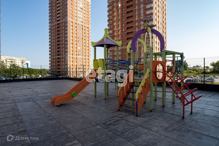 Дом комфорт класса находится в закрытом дворе. Двухэтажная детская площадка с резиновым покрытием.