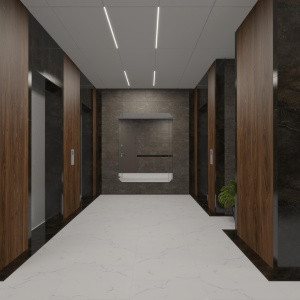 -Дом расположен на стилобате, на верхней части подиума располагается уютный и закрытый двор с концепцией «двор без машин».