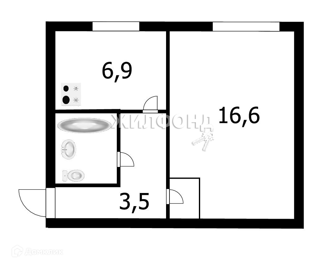 Жилая площадь 16.6 м2