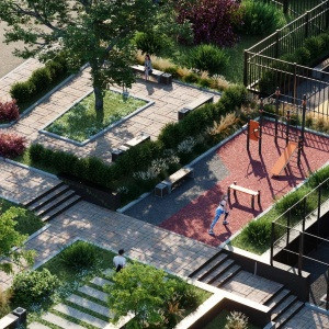 Дома из кирпича - самого надежного материала, который обеспечивает отличную шумоизоляцию и идеальный микроклимат в квартирах в любую погоду. Территория комплекса закрыта от посторонних, для автомобилистов предусмотрен подземный паркинг. Во дворе - яркие детские площадки, зоны для спорта и отдыха.