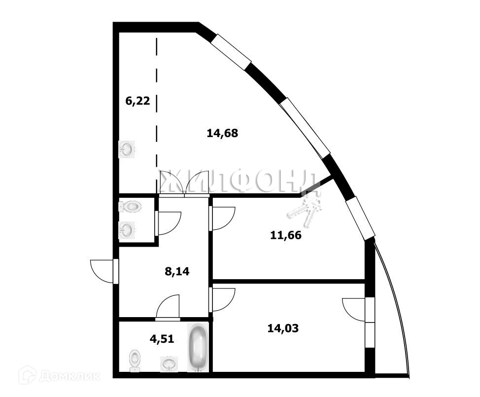 3-комнатная квартира, 64 м2, этаж 5 / 25, на продажу в Новосибирске, улица Сибревкома, 9