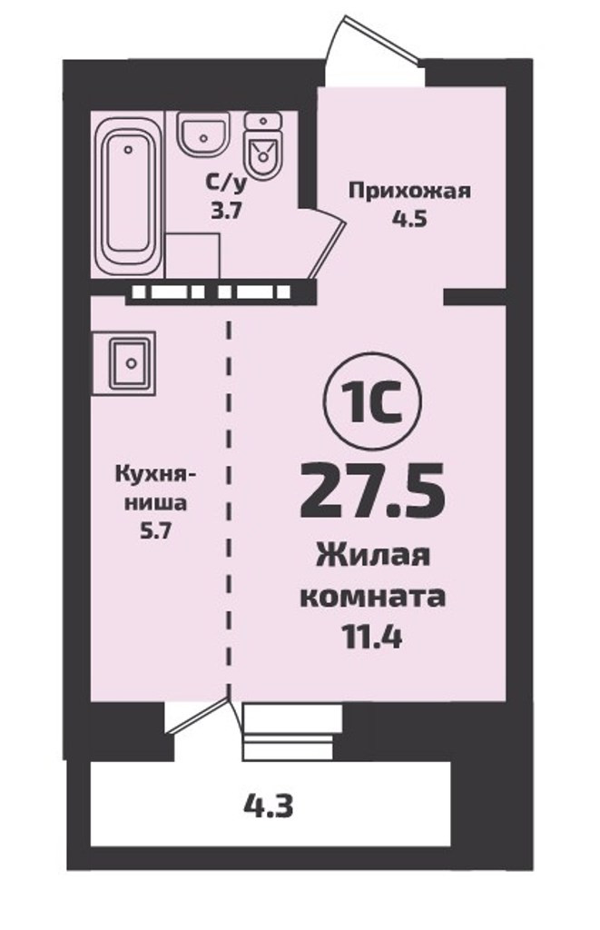 Общая площадь 27.5 м2