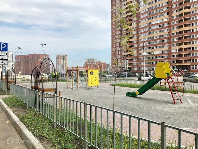 Придомовая территория оборудована детскими и игровыми площадками, зонами отдыха, озеленена кустарниками и деревьями.