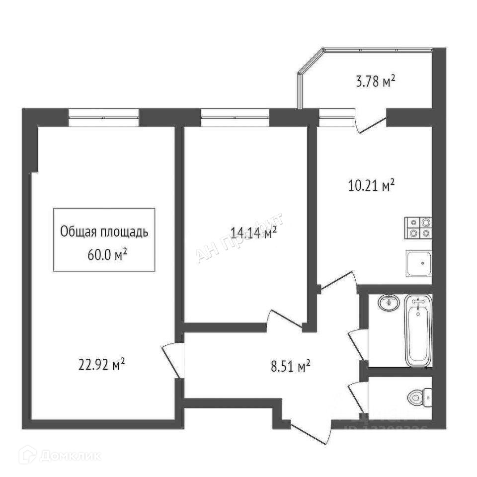 Общая площадь 60 м2