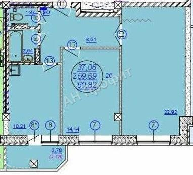 Жилая площадь 37.06 м2