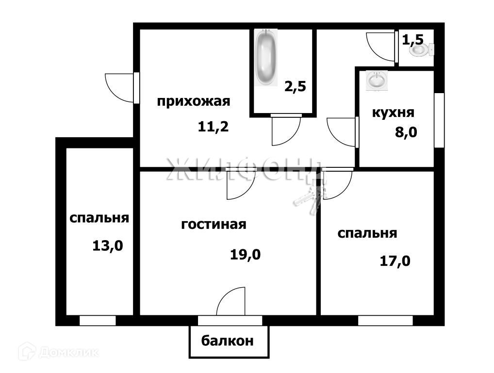 Санузел 1 раздельный