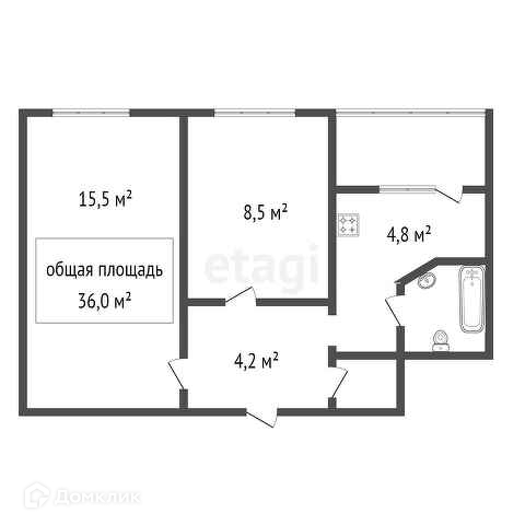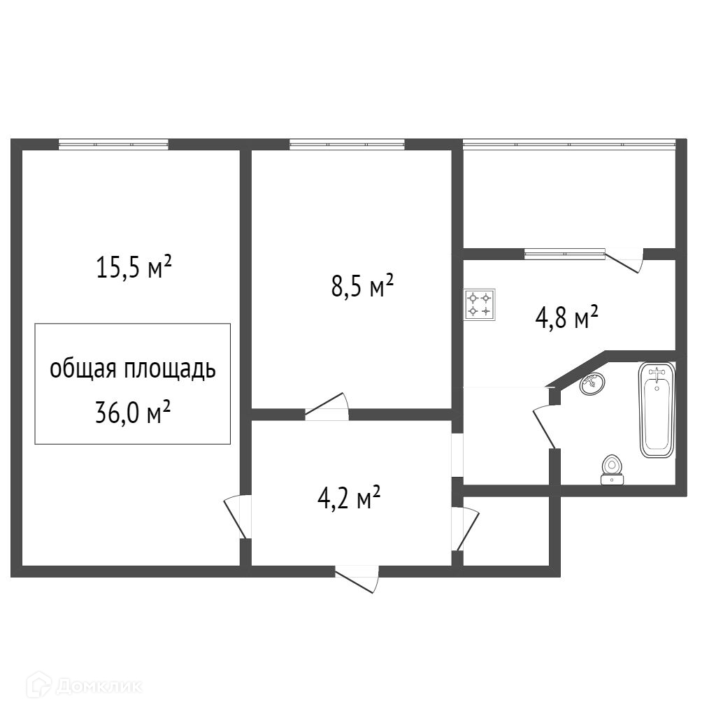 Общая площадь 36 м2
