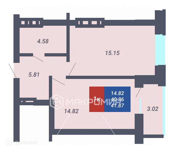 Общая площадь 42 м2
