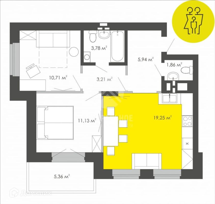 Жилая площадь 20.5 м2