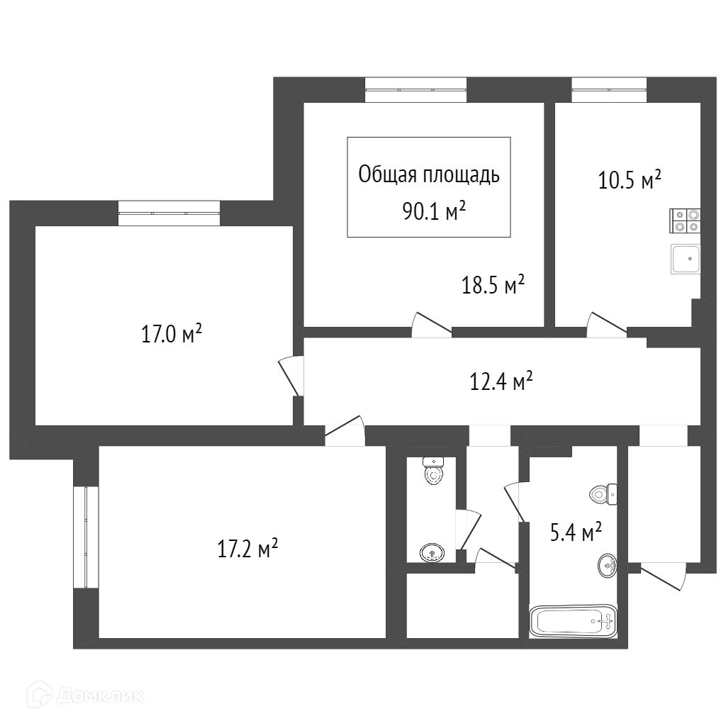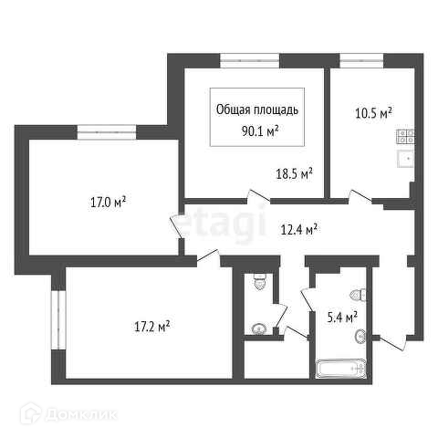 Общая площадь 90.1 м2