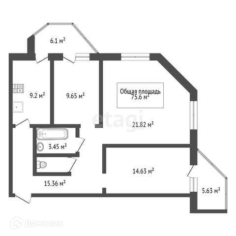 Общая площадь 75 м2