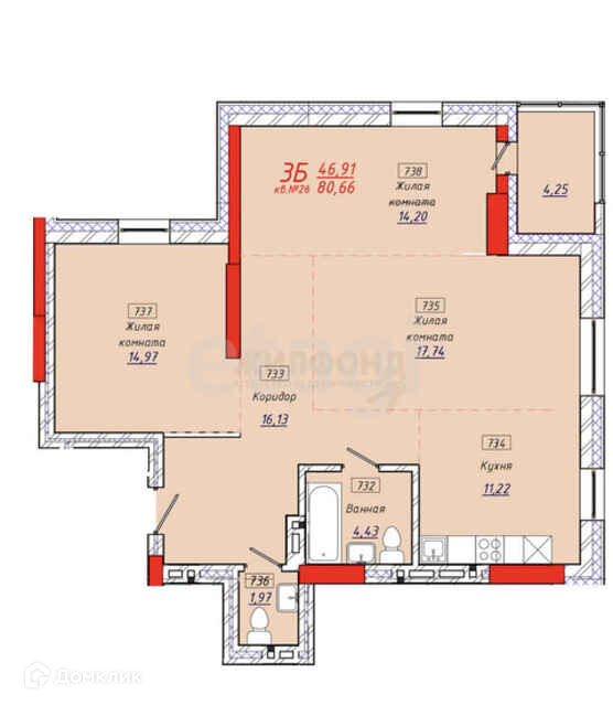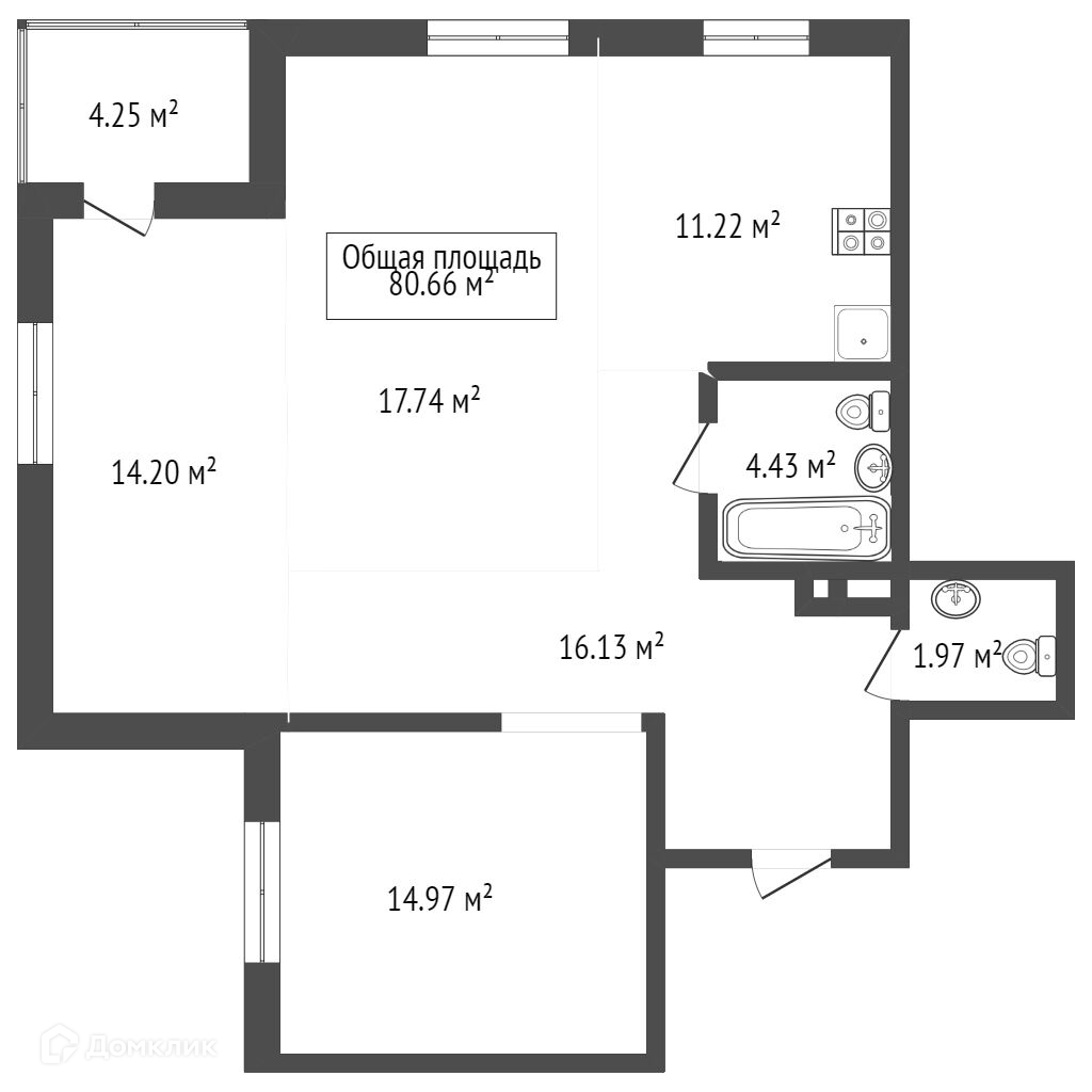 Общая площадь 83 м2