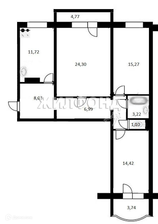 Жилая площадь 53.99 м2