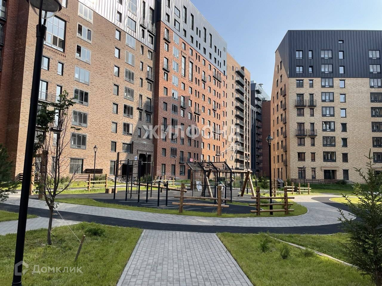 Территория оборудована детскими площадками, турниками для занятия спортом, облагорожена газонами, деревьями и кустарниками.