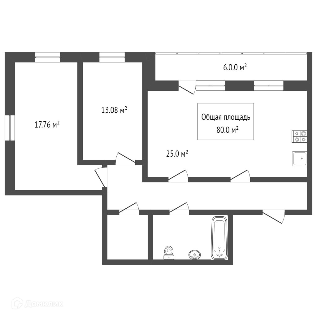 Общая площадь 80 м2