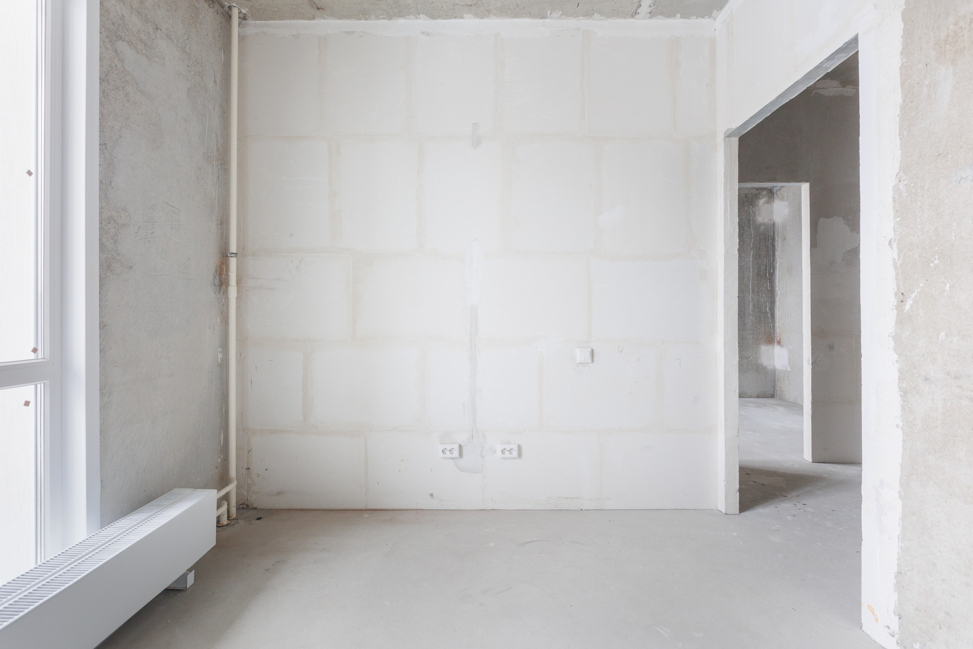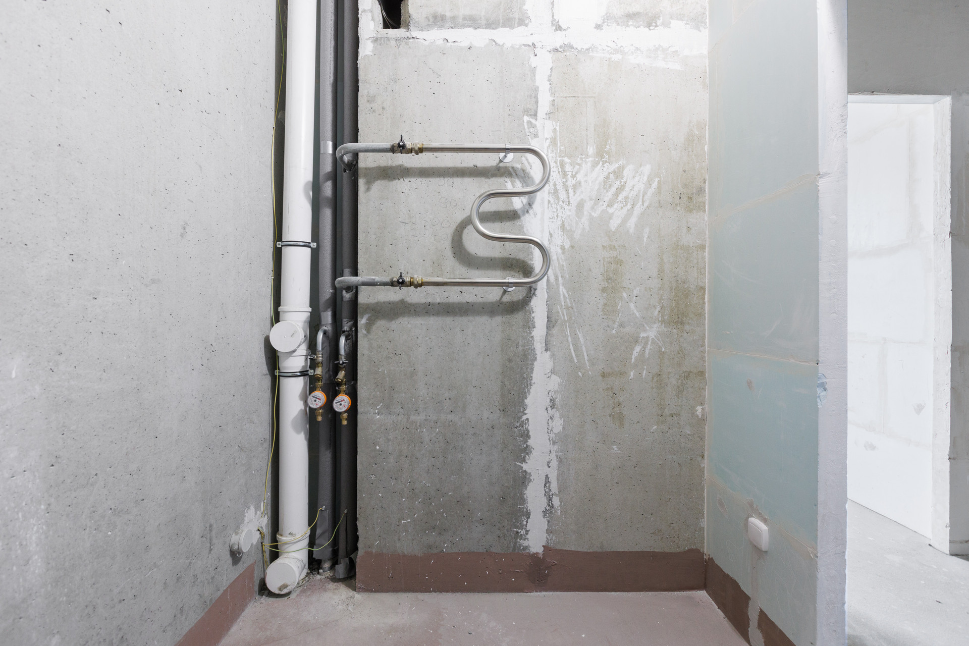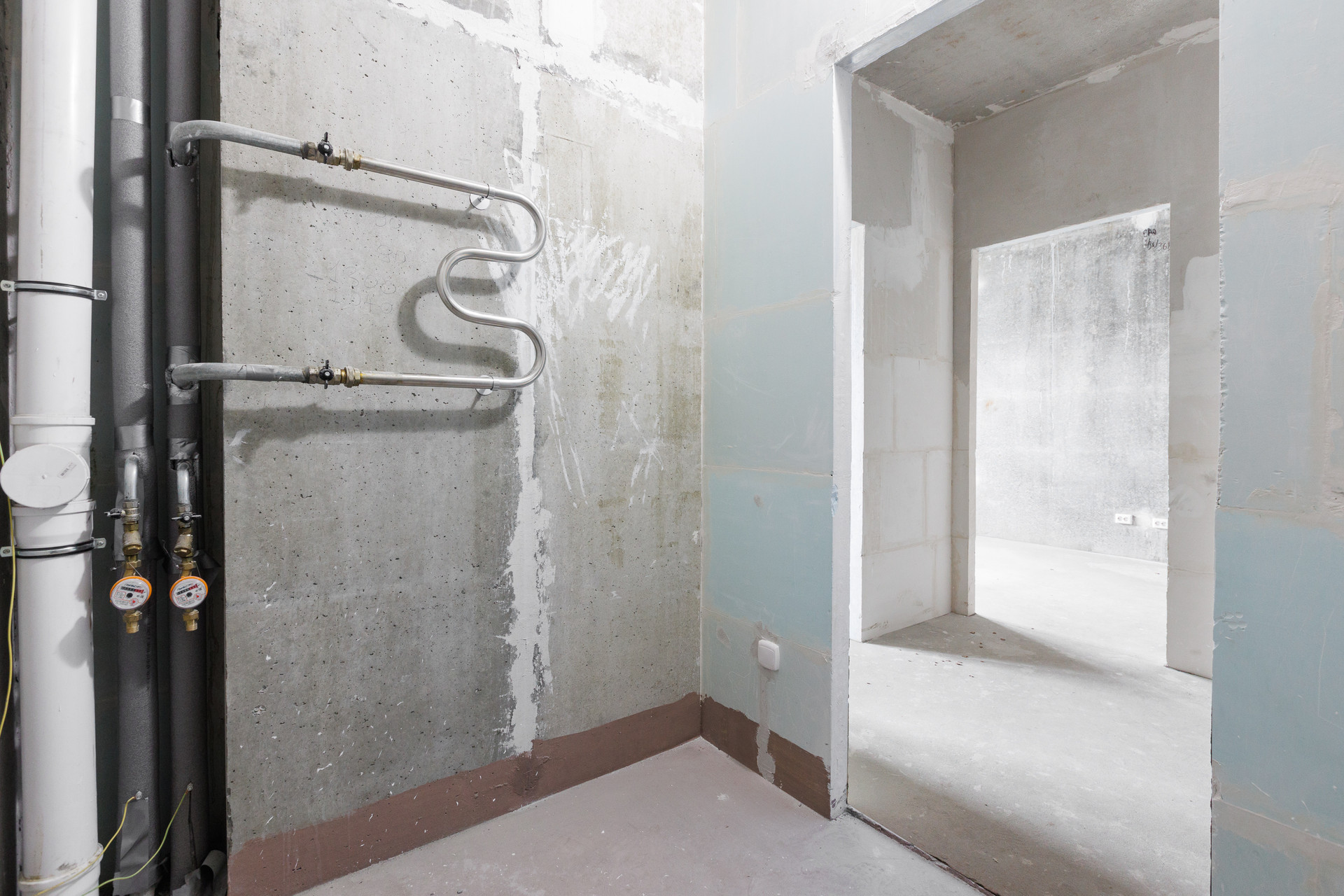 * Чистовая отделка. Установлены розетки, выключатели, счетчики учета воды, приборы отопления,