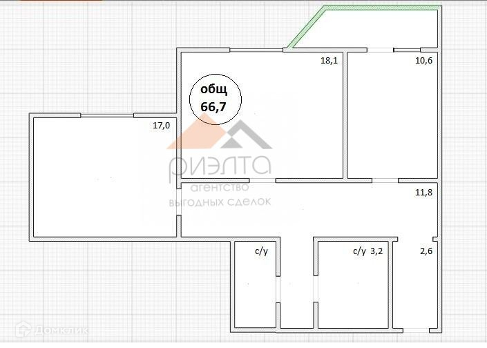 Общая площадь 66.7 м2