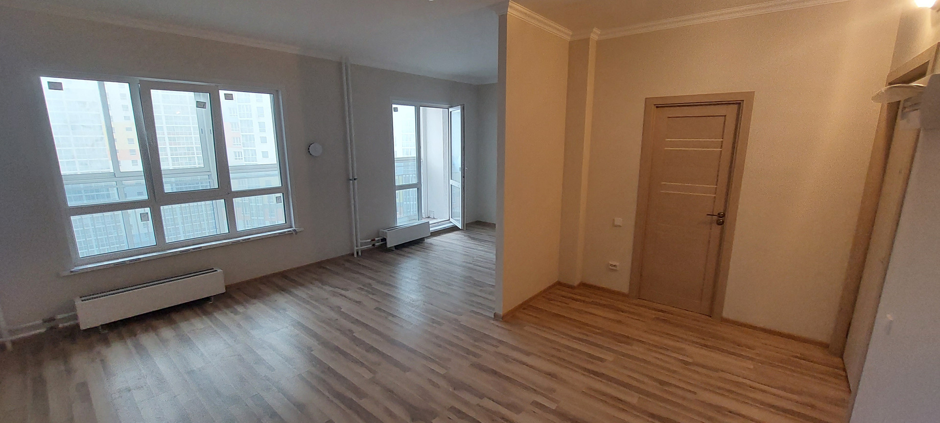 В студии выполнен хороший ремонт: качественный линолеум, стены покрыты флизелиновыми обоями, в санузле положена кафельная плитка и установлена вся необходимая сантехника, надежная стальная входная дверь, обширная застекленная лоджия 7,2 метра.
