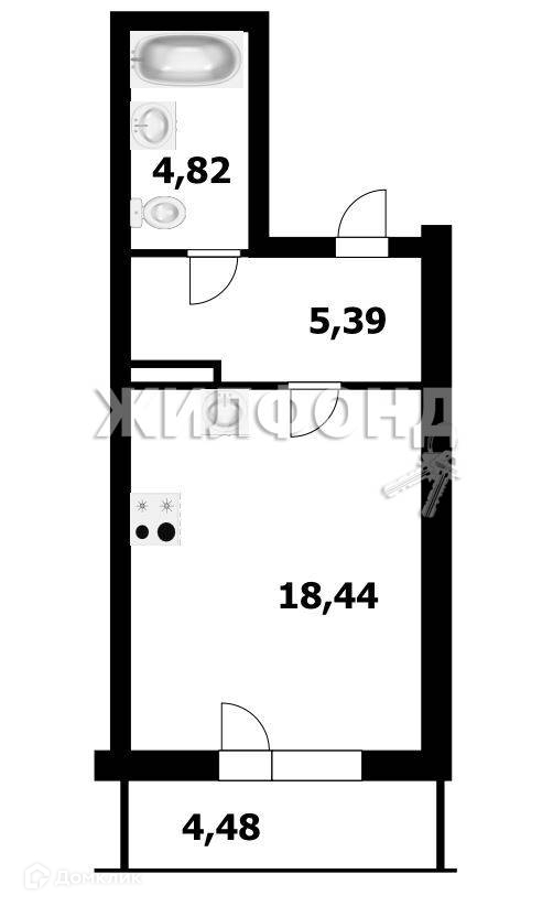 1-комнатная квартира, 28.5 м2, этаж 8 / 24, на продажу в Новосибирске