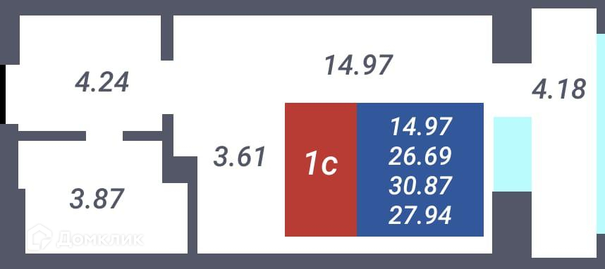 Общая площадь 26.69 м2