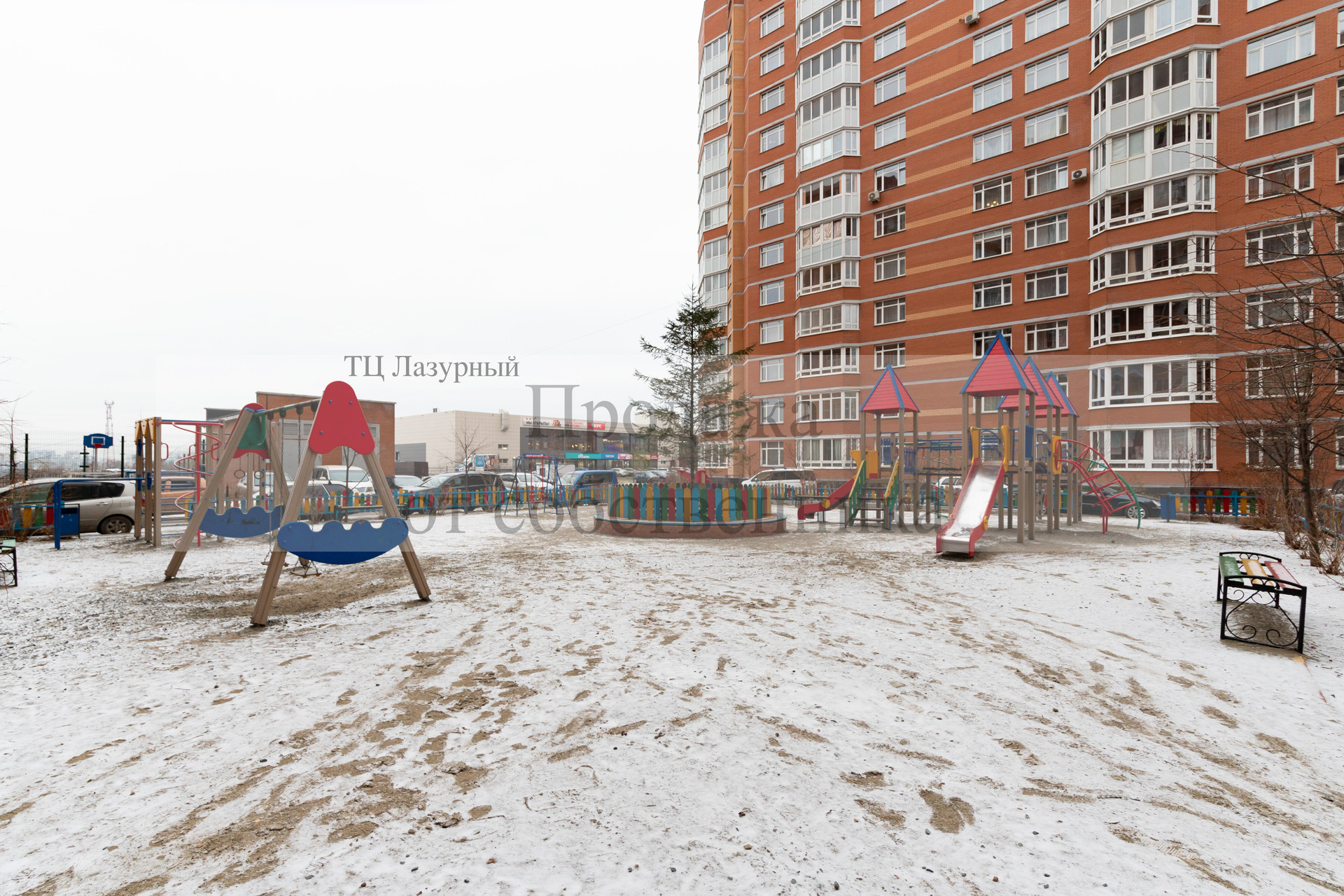 в 2-х минутах расположен ТЦ Лазурный: Почта России, Почта Банк, OZON, Магнит, KFС, пекарня, кофейня, ДНС, ателье, аптека и др.,