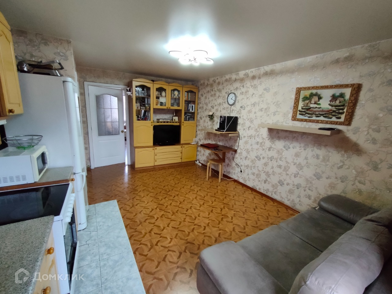 Продается светлая ухоженная квартира в тихом спальном месте Октябрьского района. В двухстах метрах находится школа  75, через стадион еще одна школа  2.  Рядом два детских сада. В шаговой доступности находятся два высших учебных заведения.  Двор не проездной. За  домом аллея для прогулок. Парковка машин на площадке возле дома. Подъезд чистый, установлены новые пластиковые окна. Соседи интеллигентные и порядочные люди. В квартире сделана перепланировка (узаконенная), есть соответствующие документы.  В квартире кухня - гостиная, широкая просторная прихожая со встроенными шкафами для одежды и обуви, ванная комната с окном 6,4 кв м. Везде линолеум, в ванной комнате кафель. Окна пластиковые выходят на обе стороны (всегда есть солнце). Дом отремонтирован. Заменены стояки отопления и водоснабжения. Установлены водосчетчики. Установлена крепкая металлическая дверь. В подарок новому владельцу остается кухонный гарнитур, шкаф для одежды. вся мебель в прихожей, зеркало.