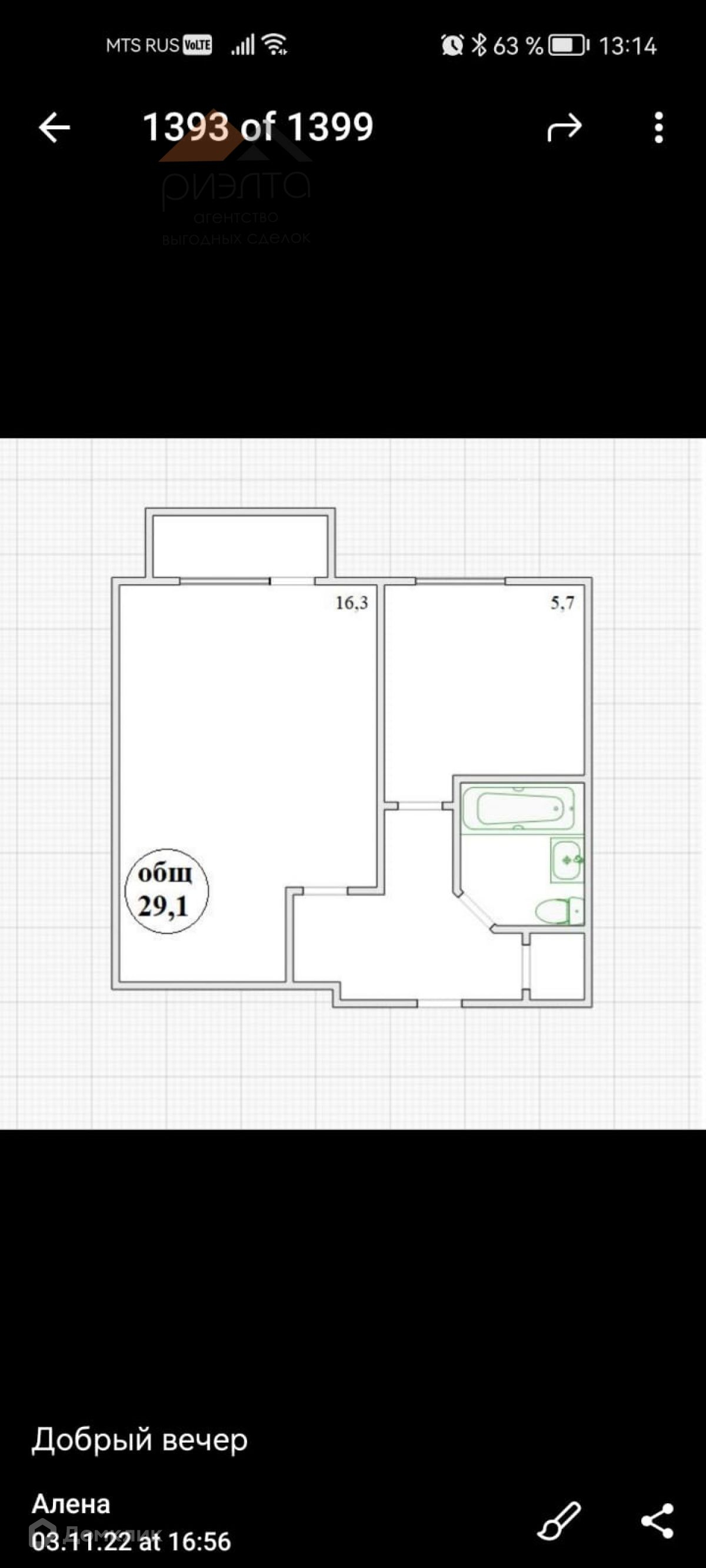 Общая площадь 29.1 м2