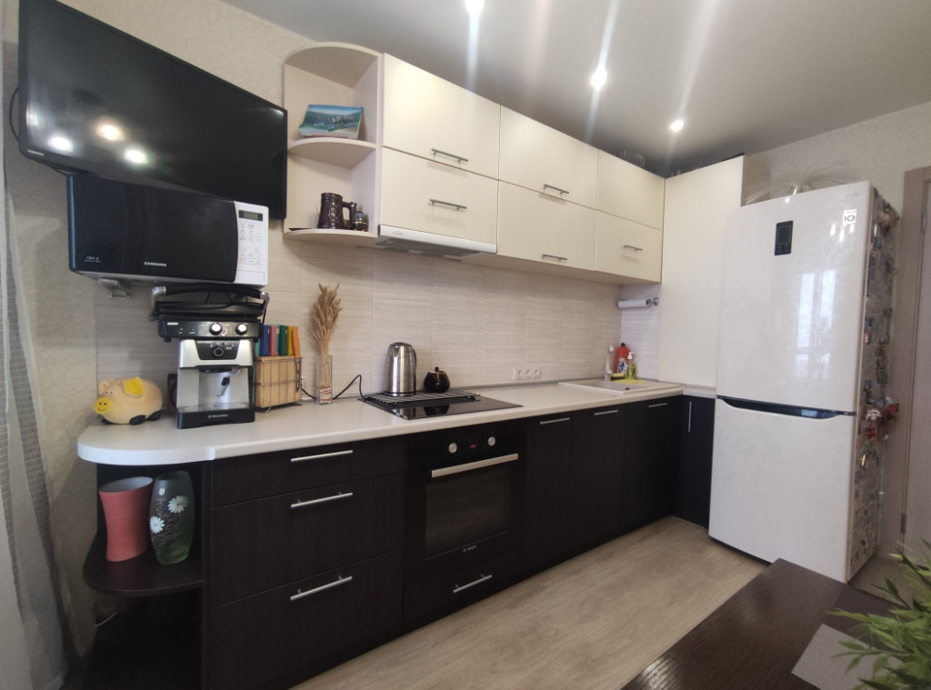 Просторная теплая и светлая 2-х комнатная квартира с качественным ремонтом. Кирпичный дом 2014 года постройки с отличной шумоизоляцией (все остальные рядом - монолитные). Огороженная территория, ворота открываются с мобильного телефона. В ЖК "Черёмушки" большая наземная парковка и подземная парков-ка, поэтому всегда есть место для авто. Грузовой и пассажирский лифт. Сам двор без машин (кратковременный въезд только для разгрузки или экстренных служб) Освещение, камеры наблюдения. Лучшая планировка во всём микрорайоне; на входе в квартиру удобный гардероб, большая кухня и комнаты, раздельный санузел. В квартире остаётся кухонный гарнитур с встроенной техникой (варочной панелью, духовкой, посудомоечной машиной). Установлен мощный водонагреватель на 50 литров. Пол: полукоммерческий линолеум с утепленным основанием, натянуты матовые потолки. Качественные межкомнатные двери с магнитными замками. Огромная лоджия (7 кв.м. - не входит в общую площадь квартиры) остеклена в пол и поло-жена плитка. Прекрасный панорамный вид с лоджии на город, позволяет насладиться вечерним чаепитием, глядя на прекрасный закат. В квартире всегда тепло, даже осенью до подачи отопления. Лучшее место левого берега, рядом с Бугринским мостом (который всегда без пробок). ДЮСШ, школы и детские сады не переполнены. Магазины возле дома: Быстроном, Пяте-рочка, Ярче, Мария-Ра. Также недалеко находится Мега (Ашан, Леруа Мерлен, Детский мир, одежда), Hoff (мебель). Отличная транспортная доступность: обновленные трамваи и автобусы, троллейбусы, маршрутки. В 10 минутах находится парк Бугринская роща, летом и зимой можно заниматься спортом и просто гулять по лесу. Один взрослый собственник, более 5 лет, чистая продажа, обременения отсутствуют.