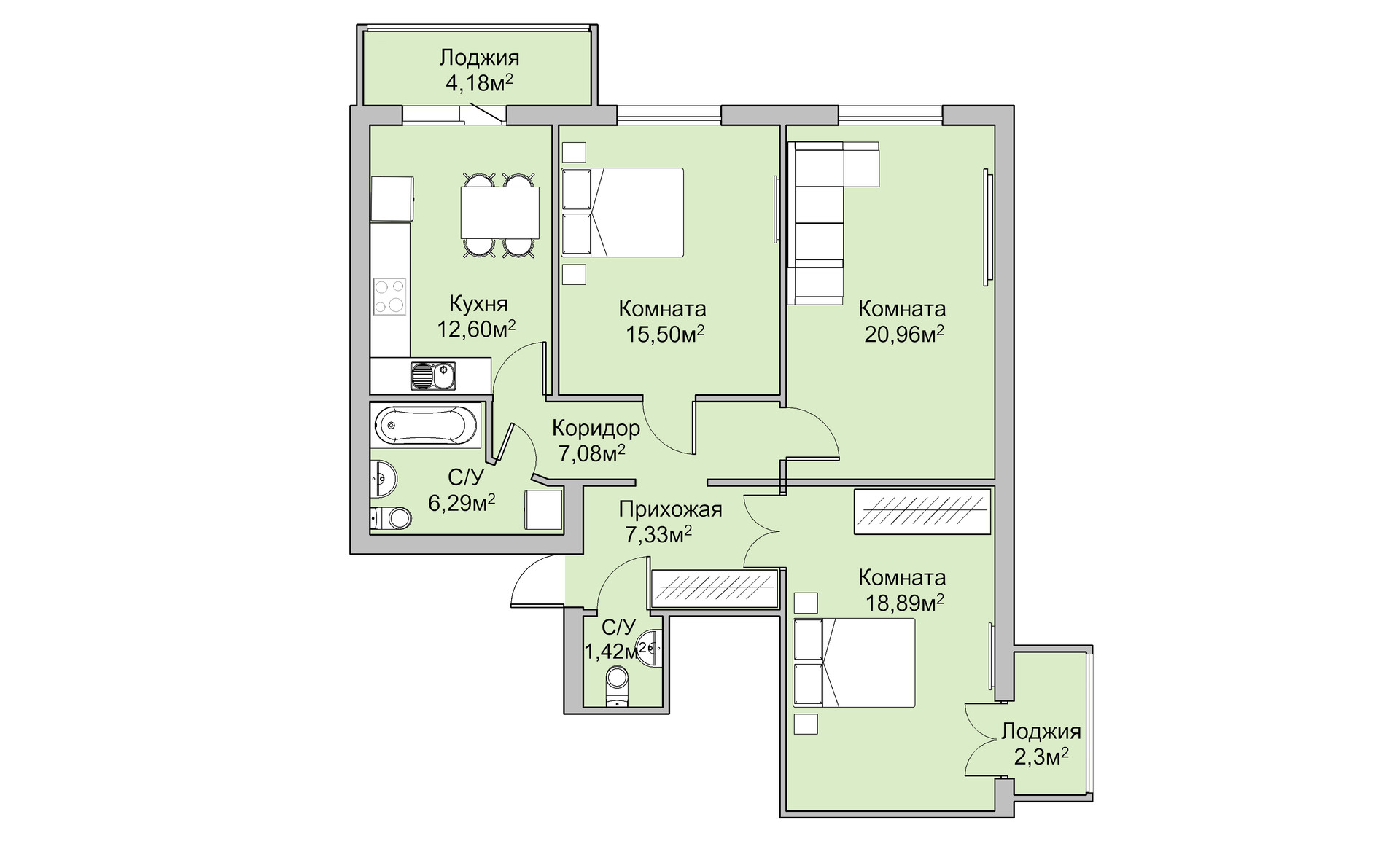 Общая площадь 91 м2