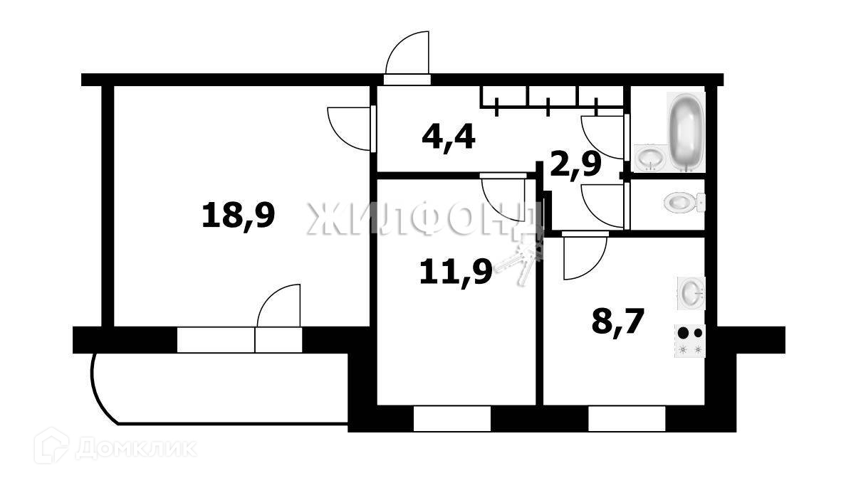 Жилая площадь 30.8 м2