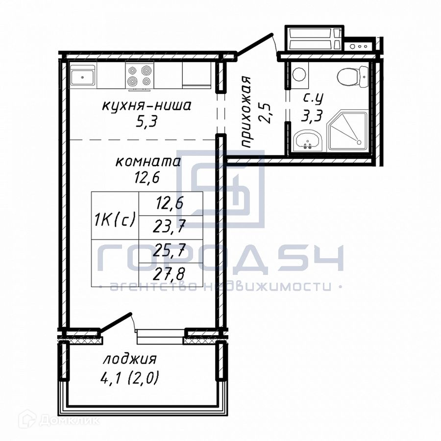 Общая площадь 27 м2