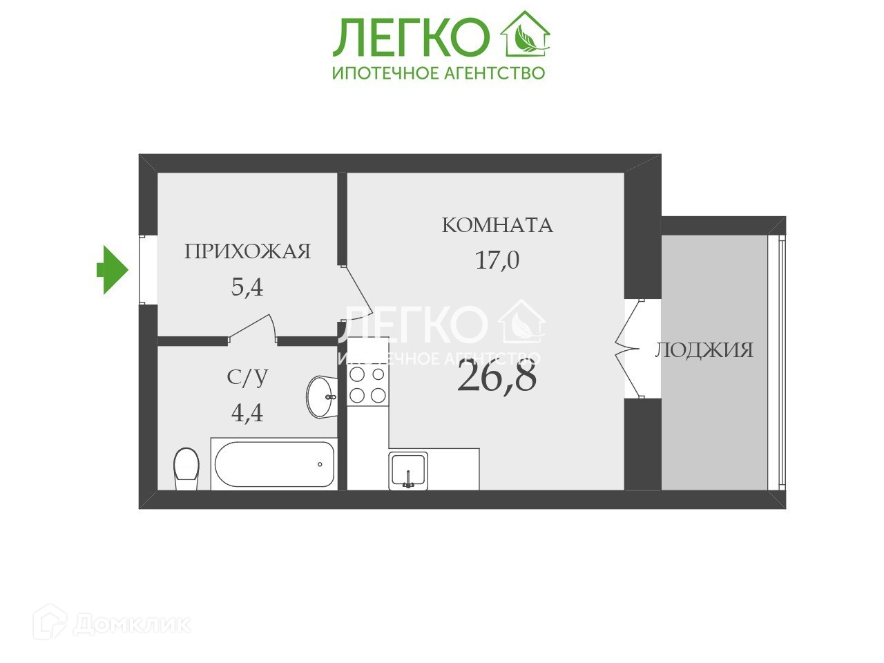 Общая площадь 26.8 м2